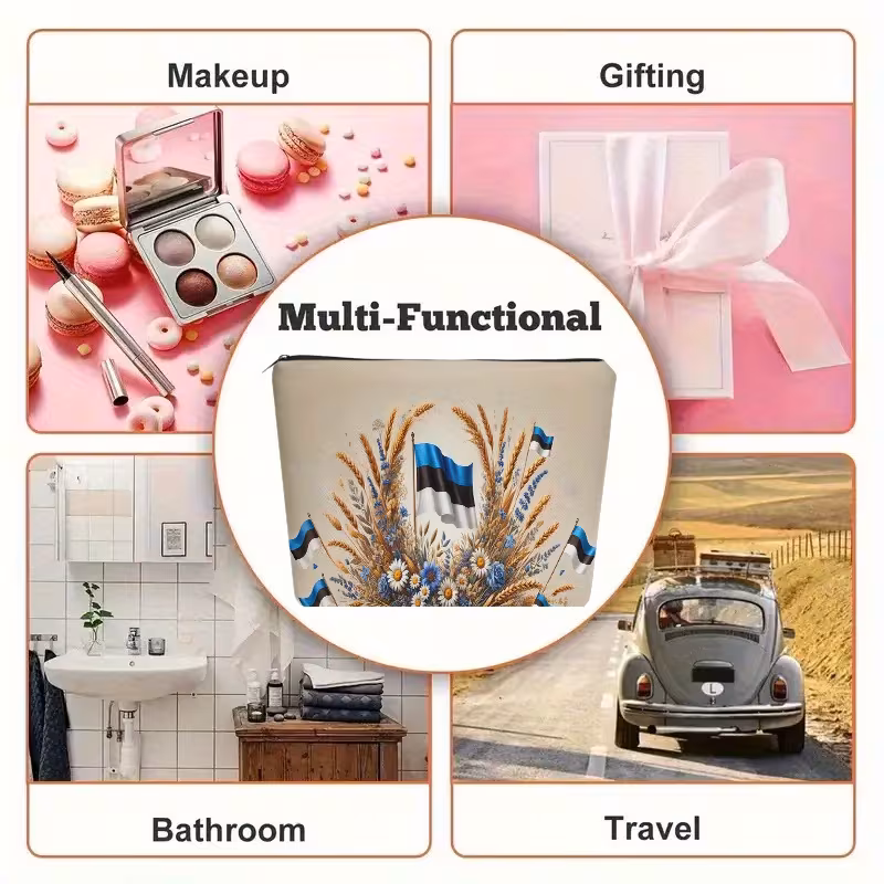 Eesti disainiga lukuga aksessuaaride kott. Vastupidav kangas. Sobib reisimiseks ja igapäevaseks kasutamiseks