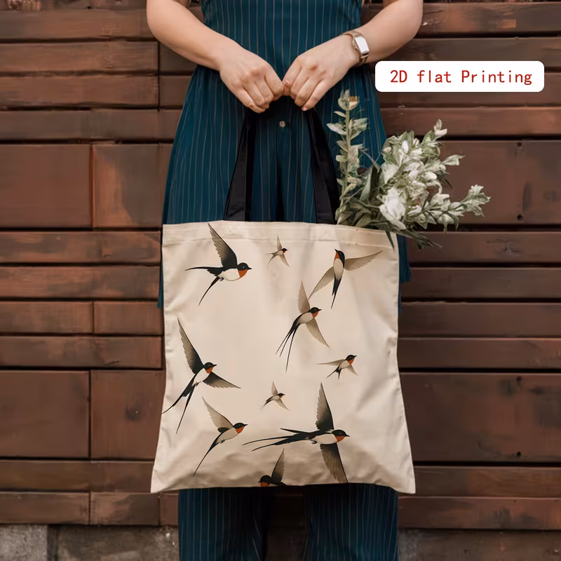 Korduvkasutatav kandekott pääsukestega. Ideaalne toidupoe ostudeks, kontorisse, piknikuteks, suvel randa minekuks ja kingituseks.